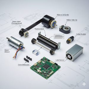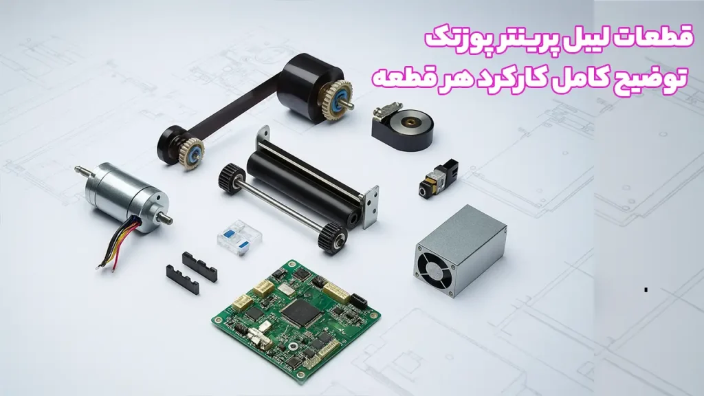 هر لیبل پرینتر پوزتک (از مدل ساده C168 تا صنعتی T3000) ترکیبی دقیق از حدود ۲۵ قطعه اصلی و بیش از ۱۰۰ قطعه کوچک است. در ادامه همهٔ آنها را بهترتیب واقعی قرارگیری داخل دستگاه و با زبان کاملاً ساده توضیح میدهیم تا دقیقاً بدانید اگر مشکلی پیش آمد، احتمالاً کدام قطعه درگیر است.